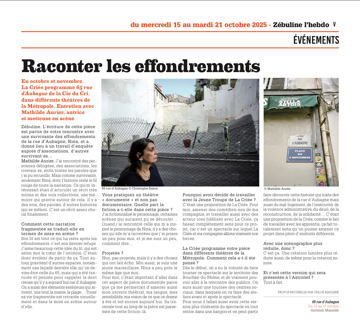 La Terrasse, critique : « Ces mots d’une précision et d’une exigence à couper le souffle font cause commune avec le témoignage de Marion Joffle, dont Léna Bokobza-Brunet s’empare avec une justesse qui se passe d’esbroufe. […] La sororité qu’elles convoquent est très touchante. En pleine complicité, les deux artistes trouvent l’équilibre d’un geste théâtral à la fois simple et risqué. C’est la vie qui gagne, ici, soutenue par des percées d’humour, des envolées de résilience. »